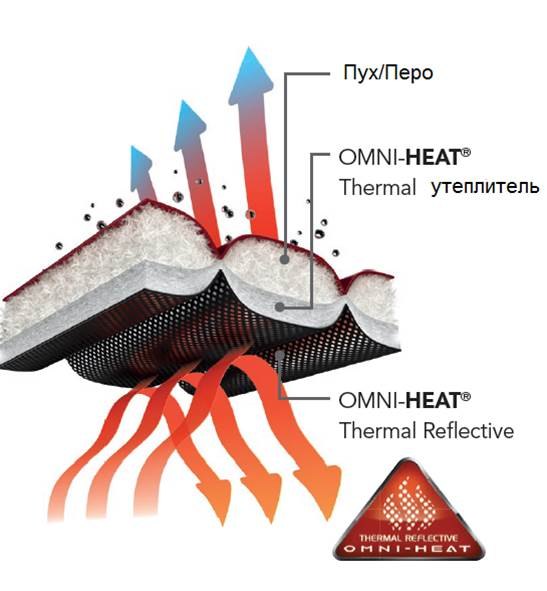 В TurboDown используется пух только высшего качества – Fill Power 550, 800, 850. Его действие усиливается отлично зарекомендовавшими себя технологиями: Omni-Heat Insulation и Omni-Heat Reflective с серебристыми отражающими тепло точками. Эта уникальная комбинация технологий позволяют максимально сохранить тепло и минимизировать тепло потери.