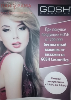 *при покупке косметики GOSH от 200.000 рублей Вы можете получить бесплатный макияж от профессионального визажиста GOSH Cosmetics.